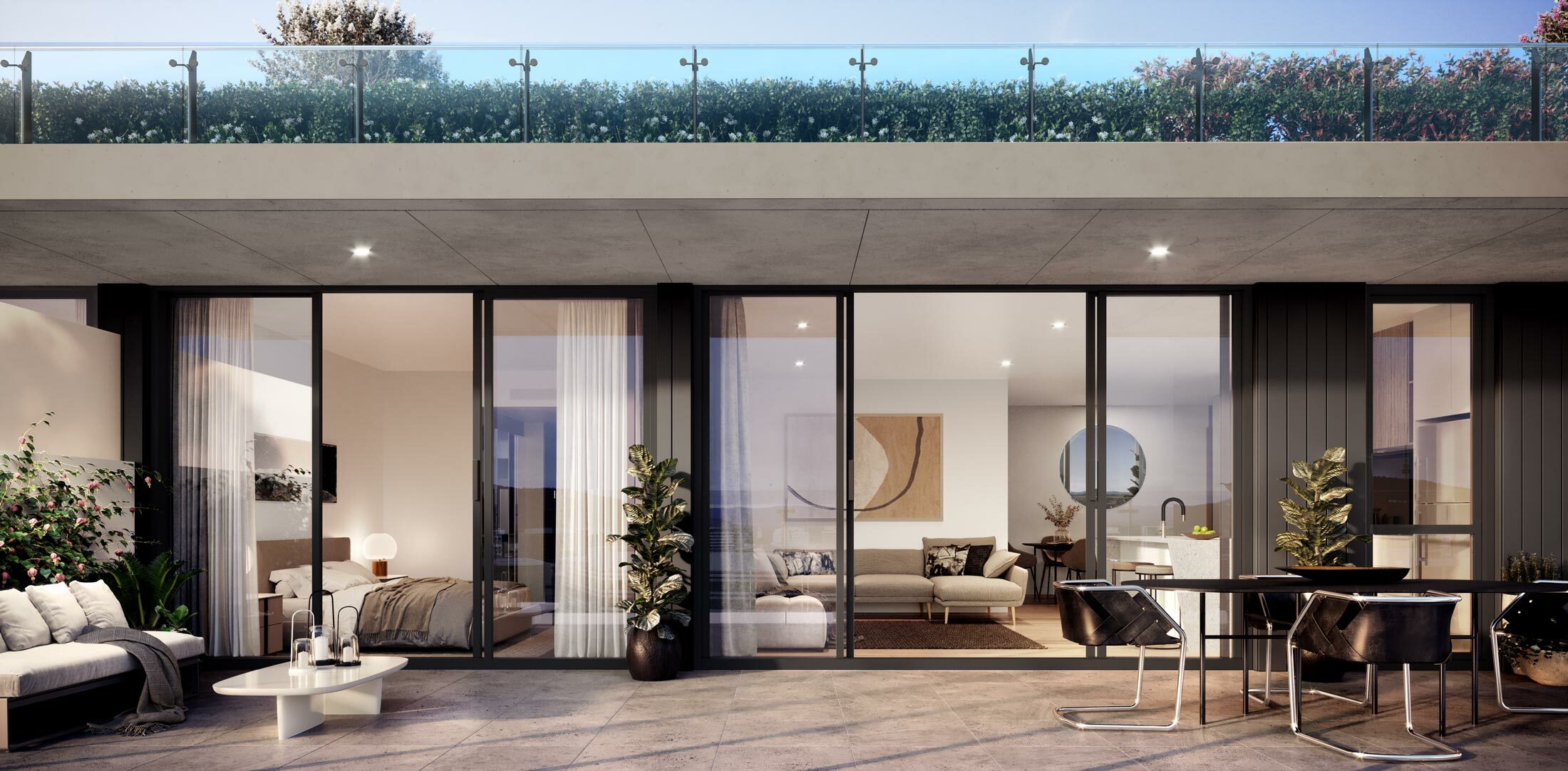 A range of sustainability features have been incorporated in the design including rooftop solar panels, rainwater capture, storage and recycling systems, electric car charging bays and enclosable winter-gardens